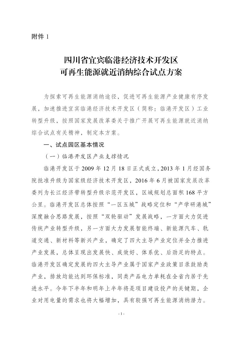附件:1.四川省宜賓臨港經(jīng)濟(jì)技術(shù)開(kāi)發(fā)區(qū)可再生能源就近消納綜合試點(diǎn)方案