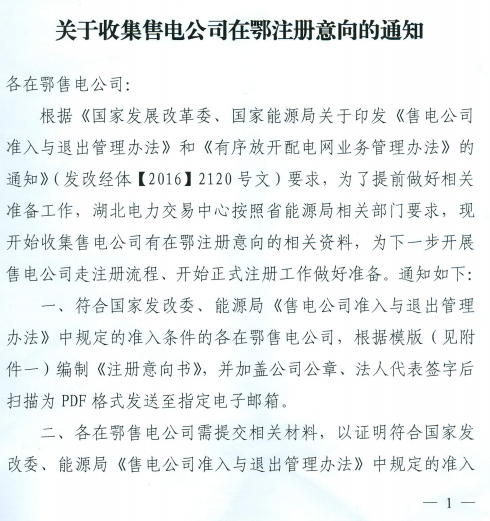 湖北電力交易中心發(fā)布《關(guān)于收集售電公司在鄂注冊意向的通知》