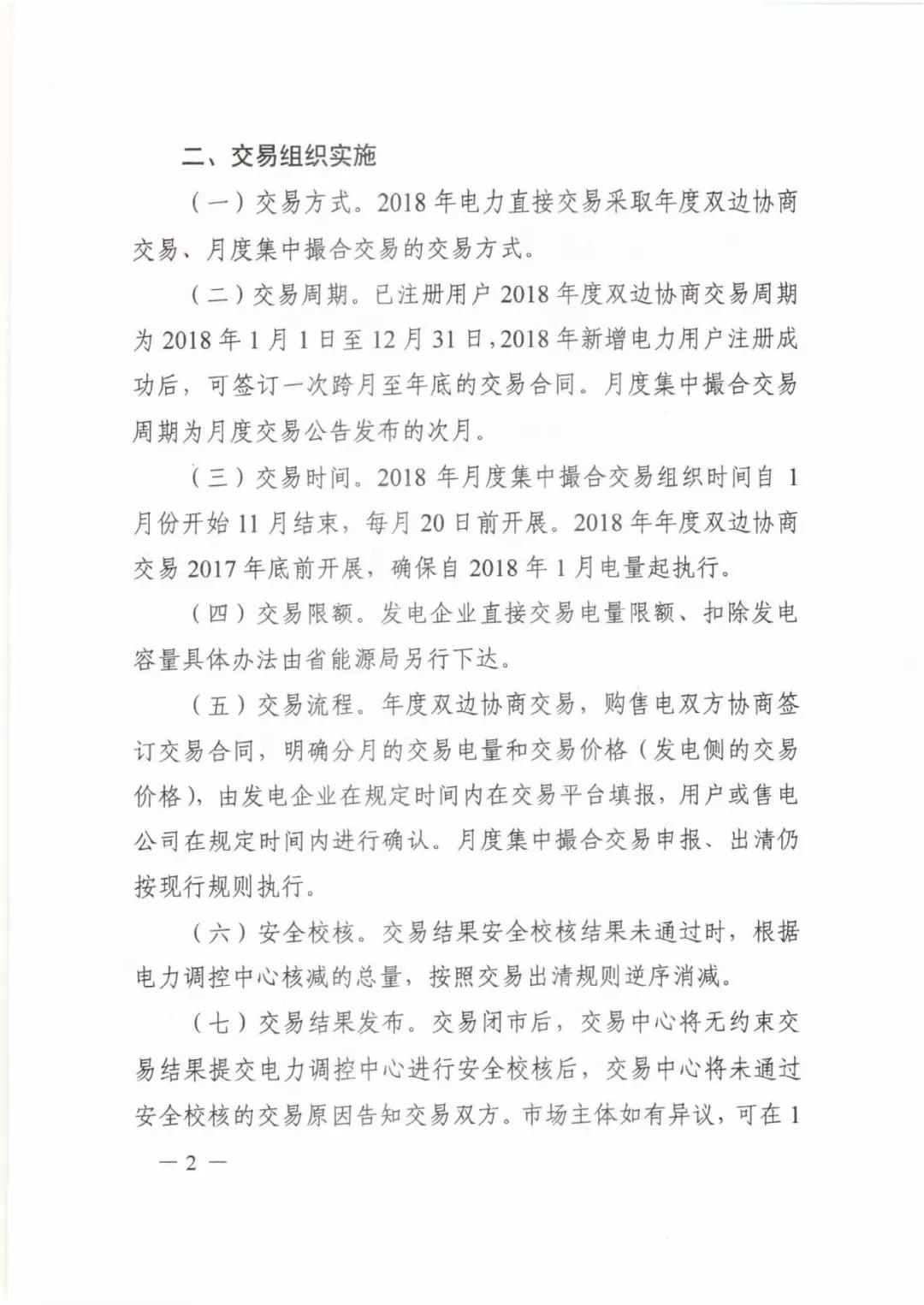 交易時(shí)間:2018年度集中撮合交易時(shí)間自1月份開始11月結(jié)束,每月20日前開展。2018年年度雙邊協(xié)商交易2017年底前開展。