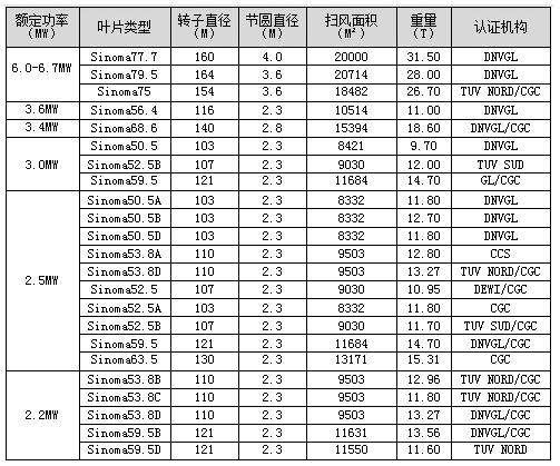 中材葉片風(fēng)電葉片產(chǎn)品序列