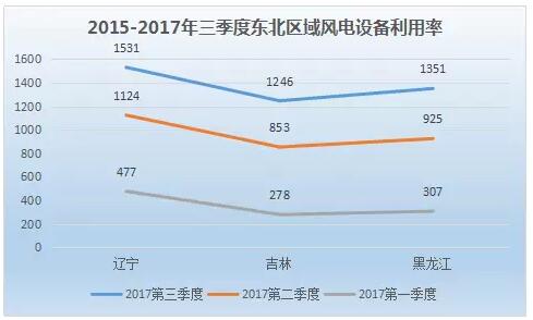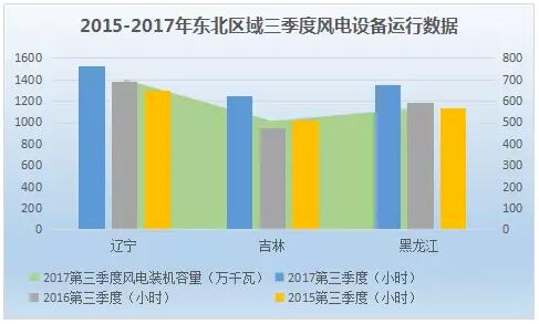 從風(fēng)電設(shè)備利用率上看,東北區(qū)域風(fēng)電消納能力凸顯。遼寧、黑龍江、吉林三季度風(fēng)電設(shè)備利用率分別為1531小時(shí)、1351小時(shí)、1246小時(shí)。與去年同期相比,東北區(qū)域風(fēng)電設(shè)備利用率提升較為明顯,遼寧、黑龍江、吉林三地增幅分別為150小時(shí)、295小時(shí)、169小時(shí)。