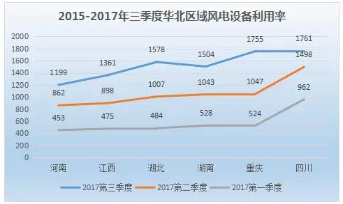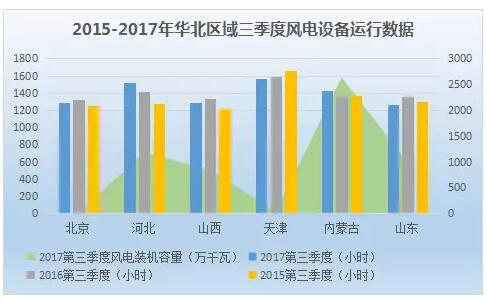 從風(fēng)電設(shè)備利用率上看,華北區(qū)域整體處于較高水平。天津、河北、內(nèi)蒙古、山西、北京、山東三季度風(fēng)電設(shè)備利用率分別為1570小時(shí)、1521小時(shí)、1432小時(shí)、1287小時(shí)、1284小時(shí)、1267小時(shí)。