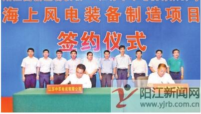 10月14日中午,陽江高新區(qū)與江蘇中車電機有限公司舉行海上風電裝備制造項目簽約儀式,這是陽江市打造風電裝備制造產(chǎn)業(yè)基地的又一件大喜事。中車株洲電機有限公司董事、副總經(jīng)理聶自強,江蘇中車電機有限公司執(zhí)行