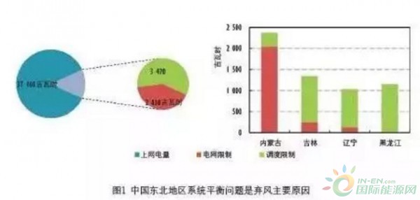 造成我國東北等地區(qū)棄風(fēng)的主要原因是系統(tǒng)平衡問題,而不是網(wǎng)絡(luò)阻塞(見圖1)。網(wǎng)絡(luò)阻塞可以解釋部分棄風(fēng),但是其他因素“比如煤電(熱電)過高的必須運(yùn)行容量、電網(wǎng)調(diào)度分辨率過粗等”造成的棄風(fēng)量更大。基于目前的系統(tǒng)不變,存在相比新建外送線路更經(jīng)濟(jì)有效、未耗竭的解決方案。擴(kuò)大外送的籠統(tǒng)建議與這些地區(qū)的主要問題不符。