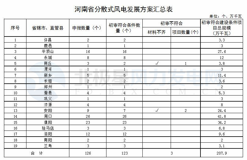 河南省發(fā)改委近日發(fā)布《關(guān)于河南省分散式風(fēng)電開(kāi)發(fā)方案的公示》,初步審查符合條件的有123個(gè)項(xiàng)目,總規(guī)模207 9萬(wàn)千瓦。以下為公示原文:關(guān)于河南省分散式風(fēng)電開(kāi)發(fā)方案的公示按照國(guó)家能源局《關(guān)于加快推進(jìn)分散式接