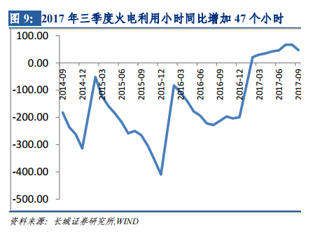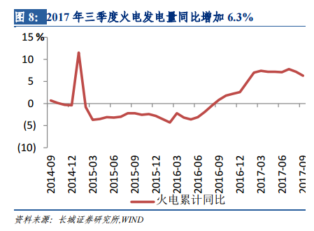 2.2.1 2017年三季度火電發(fā)電量同比增長6.3%,利用小時提高46.7小時
