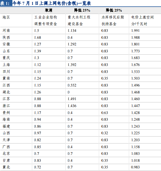 2017年7月1日,全國(guó)25個(gè)地區(qū)上調(diào)了燃煤發(fā)電標(biāo)桿電價(jià),全國(guó)平均上調(diào)額度為1.105分/千瓦時(shí)。今年6月16日,國(guó)家發(fā)改委印發(fā)《關(guān)于取消、降低部分政府性基金及附加合理調(diào)整電價(jià)結(jié)構(gòu)的通知》(發(fā)改價(jià)格[2017]1152號(hào)),擬自2017年7月1日起,取消向發(fā)電企業(yè)征收的工業(yè)企業(yè)結(jié)構(gòu)調(diào)整專(zhuān)項(xiàng)資金,將國(guó)家重大水利工程建設(shè)基金和大中型水庫(kù)移民后期扶持基金征收標(biāo)準(zhǔn)各降低25%,騰出的電價(jià)空間用于提高燃煤電廠標(biāo)桿上網(wǎng)電價(jià),緩解燃煤發(fā)電企業(yè)經(jīng)營(yíng)困難。