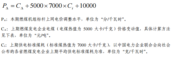 燃煤機(jī)組標(biāo)桿上網(wǎng)電價(jià)與煤價(jià)聯(lián)動(dòng)計(jì)算公式: