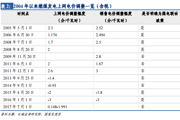 4.2 從2004年以來(lái)的燃煤發(fā)電上網(wǎng)電價(jià)調(diào)整情況: