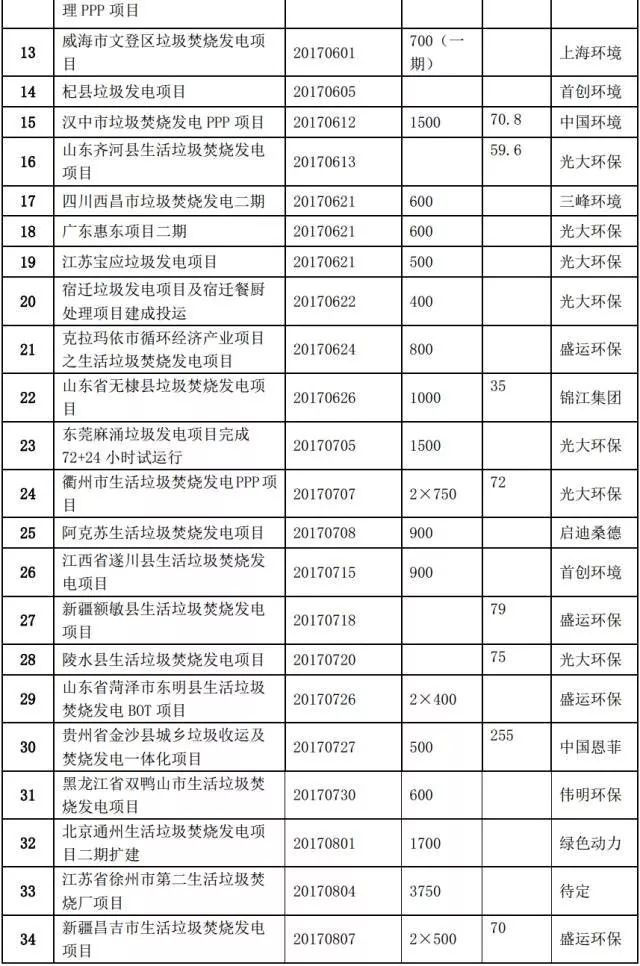 2017年以來(lái)全國(guó)垃圾發(fā)電擬建項(xiàng)目匯總
