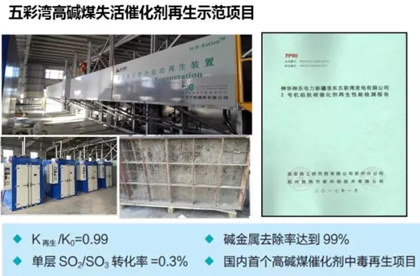 2016年,北京低碳所與國(guó)節(jié)能公司聯(lián)合完成“神東電力新疆準(zhǔn)東五彩灣發(fā)電有限公司一期2×350MW鍋爐脫硝催化劑再生項(xiàng)目”,再生后催化劑性能夠恢復(fù)到新鮮催化劑99%以上,運(yùn)行一年多以來(lái)效果優(yōu)良。該項(xiàng)目是新疆地區(qū)第一個(gè)脫硝催化劑再生示范項(xiàng)目,也是我國(guó)第一個(gè)針對(duì)高堿金屬中毒催化劑的脫硝催化劑再生項(xiàng)目,具有重大的科技示范意義。