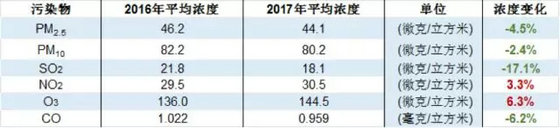 全國(guó)365座城市2017年各項(xiàng)污染物濃度與2016年同期比較