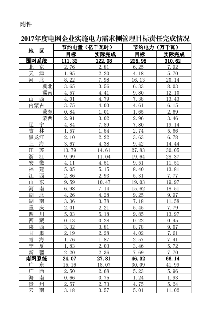 2017年度電網(wǎng)企業(yè)實施電力需求側(cè)管理目標(biāo)責(zé)任完成情況