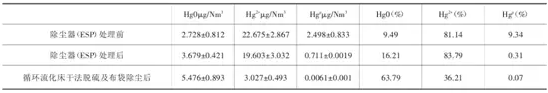 ②與鍋爐的燃燒條件相關(guān)。而元素汞和顆粒態(tài)汞相當(dāng),各占9.5 %。由各測(cè)試點(diǎn)的氣態(tài)總汞含量可以計(jì)算得到,ESP對(duì)總汞的去除率約為20%FGD ,Baghouse對(duì)總汞的去除率約為63%,總汞總?cè)コ始s為70%。