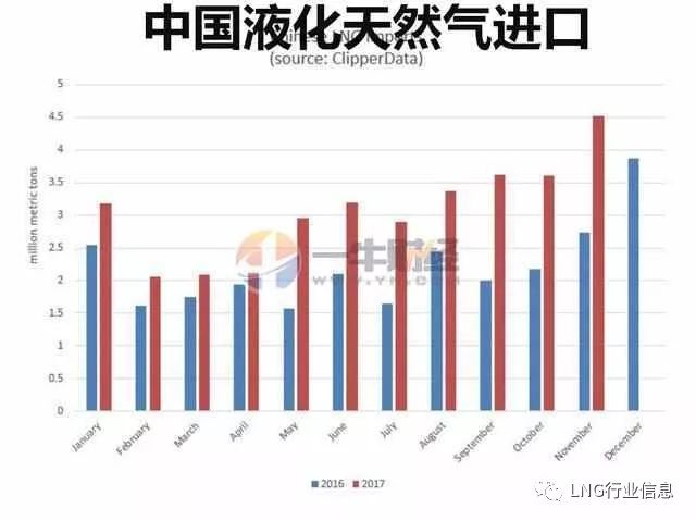 雖然2017的需求上升了近20%,但液化天然氣進(jìn)口量卻猛增了近50%。11月,液化天然氣進(jìn)口量達(dá)到了創(chuàng)紀(jì)錄的450萬噸。