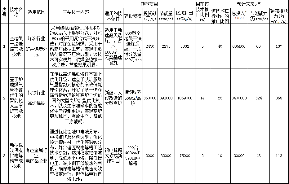 近日國家發(fā)改委發(fā)布了關(guān)于對《國家重點節(jié)能低碳技術(shù)推廣目錄》(2017年本 節(jié)能部分)擬入選技術(shù)情況公開征求意見的通知,其中涉及全粒級干法選煤節(jié)能技術(shù)、基于爐腹煤氣量指數(shù)優(yōu)化的智能化大型高爐節(jié)能技術(shù)、基于三相采樣與快速響應(yīng)的電機節(jié)能技術(shù)、CO2空氣源熱泵供熱技術(shù)等,詳細情況如下: