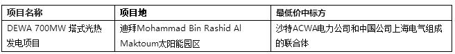 迪拜Mohammed Bin Rashid Al Maktoum太陽能園區(qū)第四階段的700MW光熱發(fā)電項目的中標結果于2017年9月中旬對外公布。迪拜水電局DEWA表示,該項目總計投資142億迪拜迪拉姆(約合人民幣253億元),將授予沙特ACWA電力公司和中國公司上海電氣組成的聯合體。這是世界上最大的光熱發(fā)電項目,將基于IPP模式建設。ACWA和上海電氣聯合體在該項目中投出的最低價(平準化電價)7.3美分/kWh(約合人民幣0.48元/kWh)成功中標。
