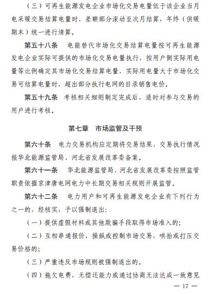 河北發(fā)改委:京津唐電網(wǎng)冀北(張家口可再生能源示范區(qū))可再生能源市場化交易規(guī)則