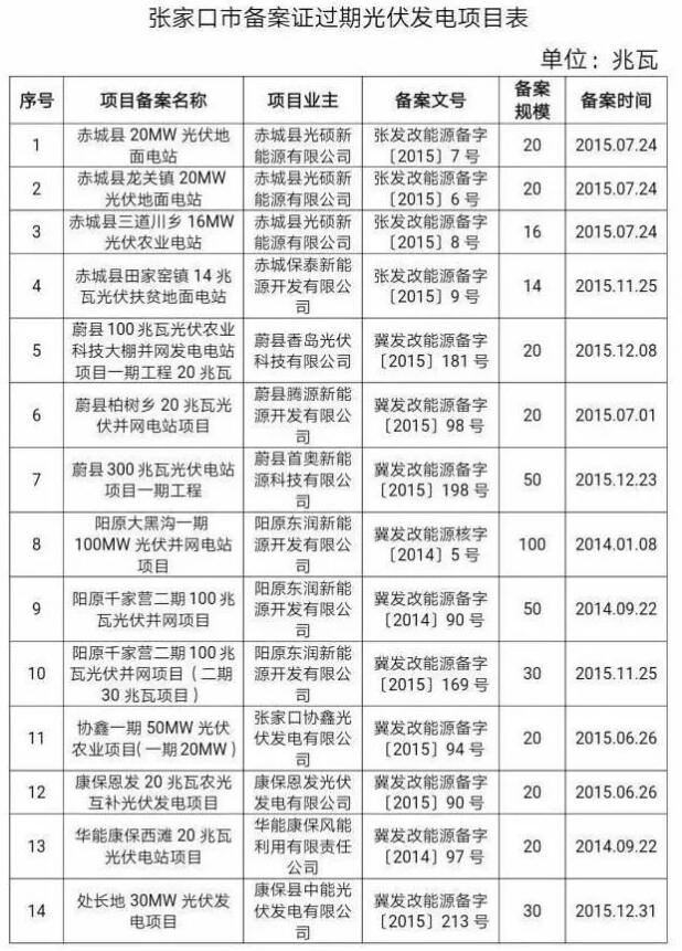 99個!河北省備案證過期光伏發(fā)電項目匯總