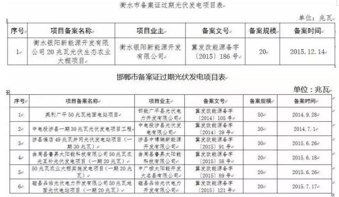 99個!河北省備案證過期光伏發(fā)電項目匯總