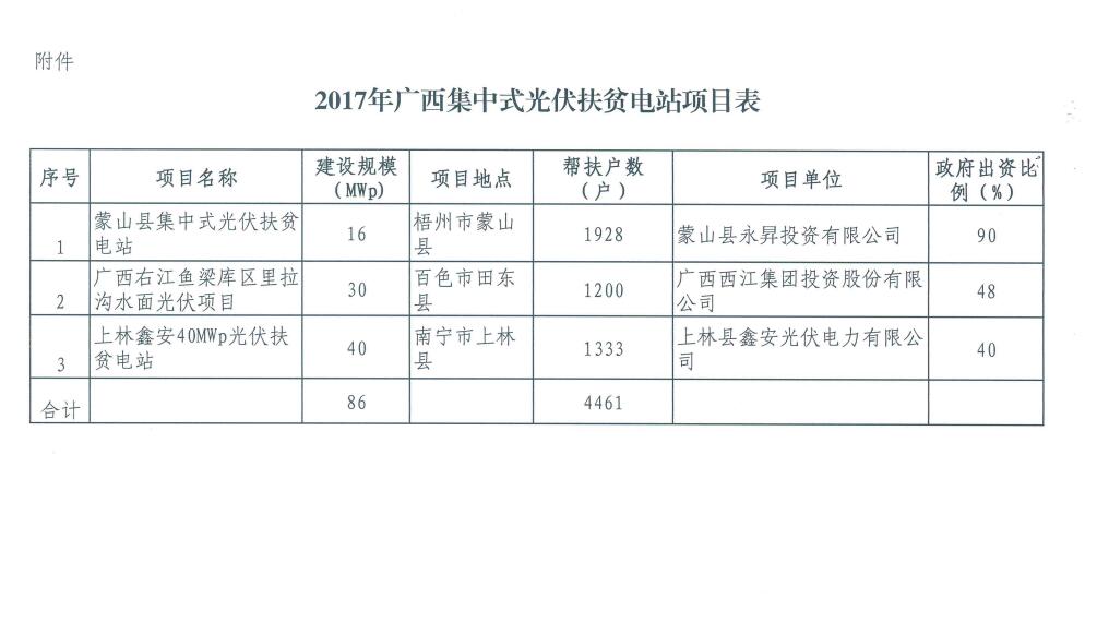 86MW!廣西公布2017年集中式扶貧光伏電站項(xiàng)目(附表)