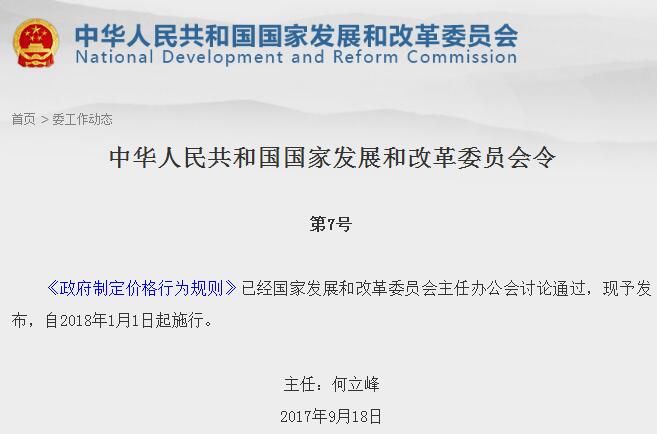 發(fā)改委頒布新版《政府制定價格行為規(guī)則》 點名網(wǎng)絡型自然壟斷環(huán)節(jié)價格