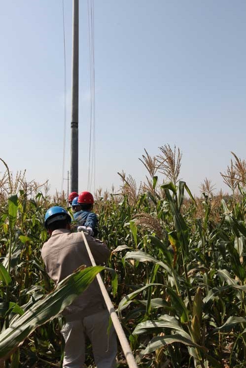 10月10日,工人們正在野外架設(shè)電力線路。金九月,銀十月,當(dāng)前,正是電網(wǎng)改造施工的黃金季節(jié),安徽電力亳州渦陽供電公司抓住當(dāng)前天氣晴好,有利電網(wǎng)工程建設(shè)的良好時機,及時組織工程技術(shù)人員對城鄉(xiāng)薄弱電網(wǎng)進