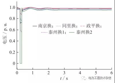 表2 同里換流站附近交流線路故障后換流母線電壓