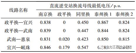 表1 南京換流站附近交流線路故障后換流母線電壓