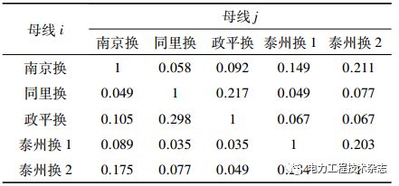 結(jié)果顯示饋入江蘇電網(wǎng)的4回直流各換流母線間共20個fMIIF ,僅有8個超過0.1,6個超過0.15,可見江蘇電網(wǎng)的某一回直流在換流母線處的電壓波動對其余直流換流母線電壓的影響較小,四回直流間的相互聯(lián)系程度總體上較弱。
