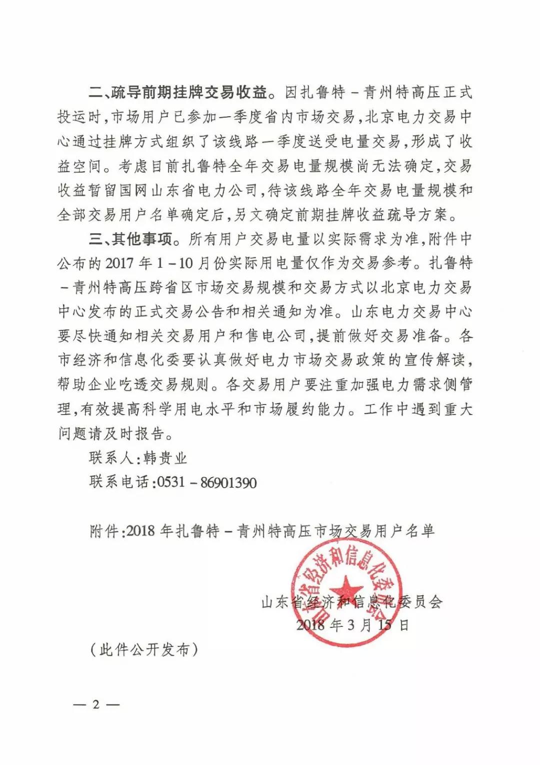 通知中稱,考慮目前扎魯特全年交易電量規(guī)模尚無法確定,交易收益暫留國網(wǎng)山東省電力公司,待該線路全年交易電量規(guī)模和全部交易用戶名單確定后,確定前期掛牌收益疏導(dǎo)方案。