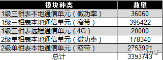 本次招標需求的模塊總數量為3,393,743只,技術方案分別是載波、微功率無線和4G。