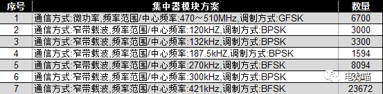 I型集中器共選用了7種不同的窄帶載波方案。