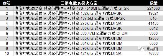 三相智能電能表共選用了10種不同的窄帶載波方案,同時上述兩種新的載波方案四川市場在三相表中也有選用。